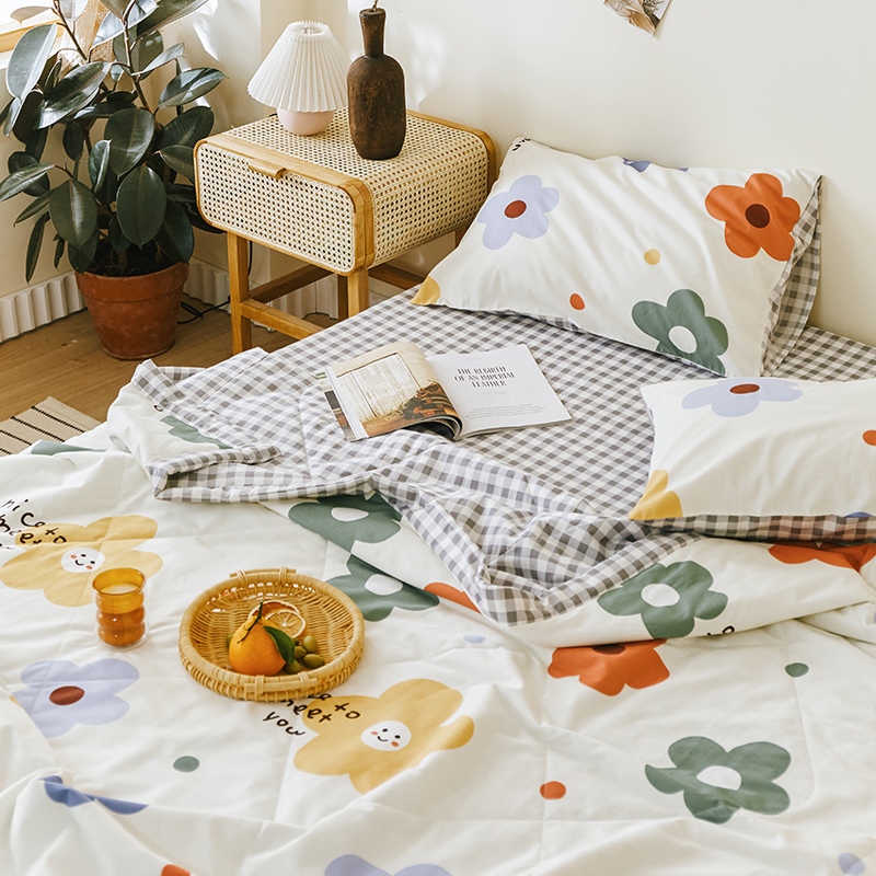 AB双版喷气印花面料 填充整张仿丝棉 手包边工艺