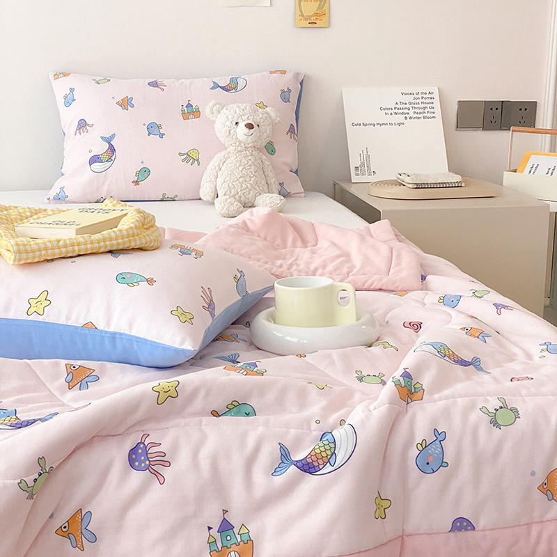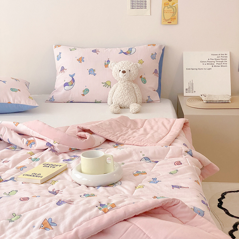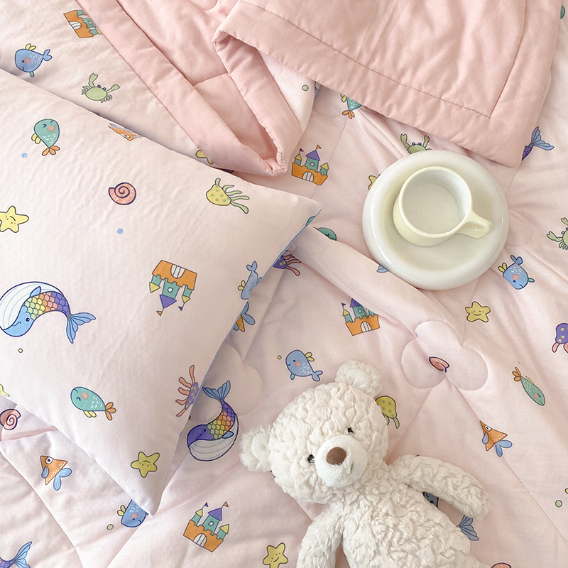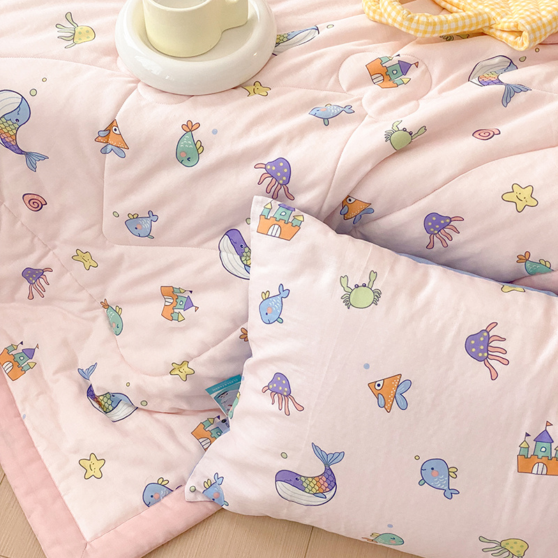 高颜值印花图案加上大气的手包边、使整条被子生动萌趣。