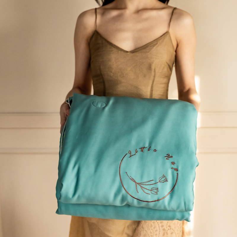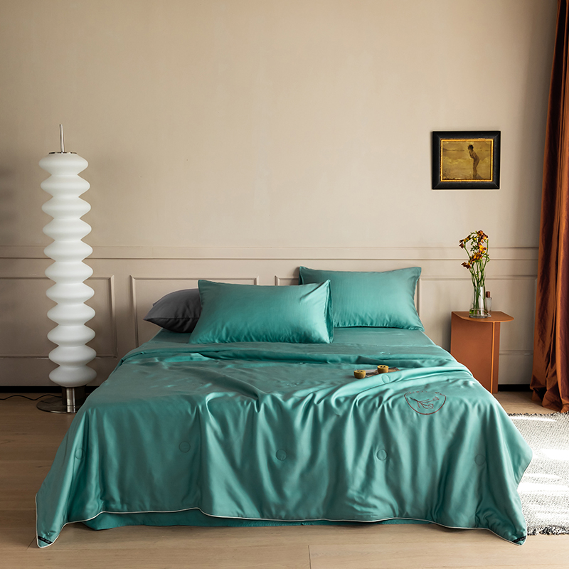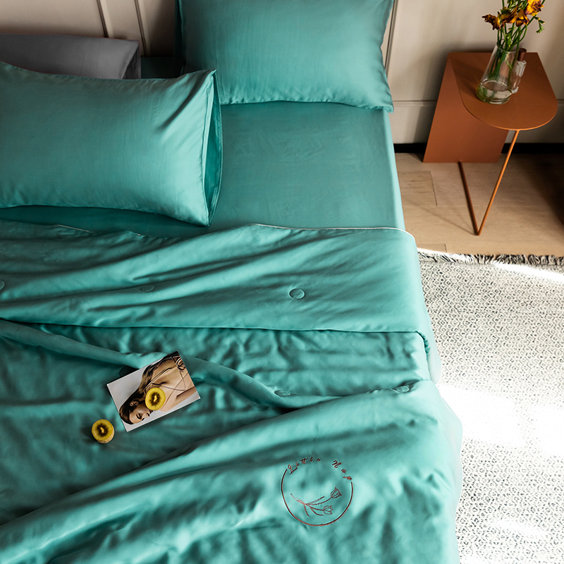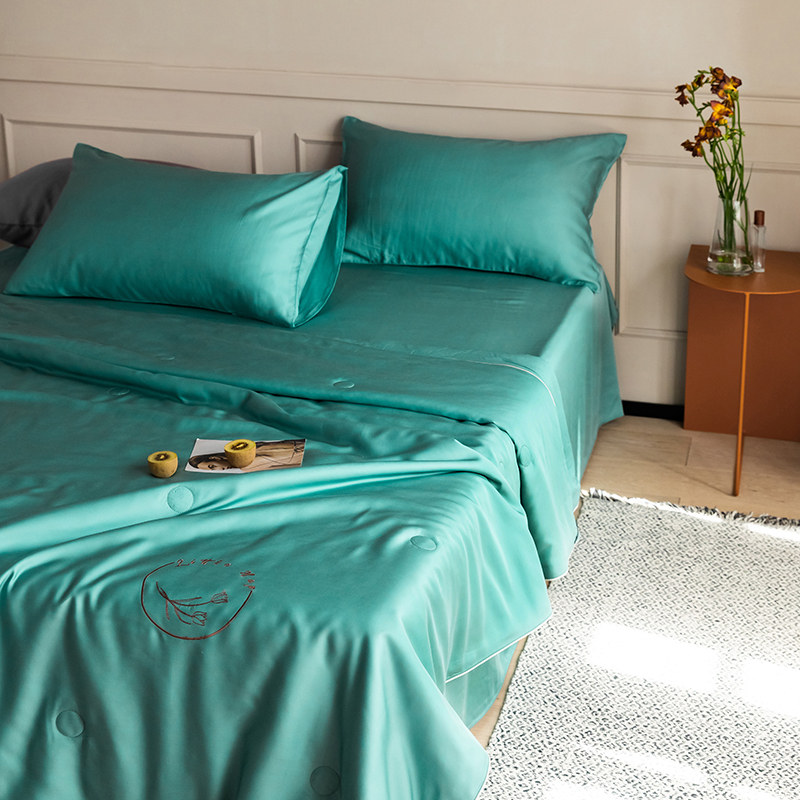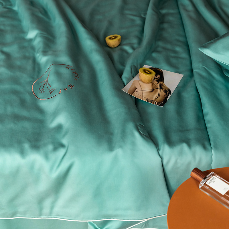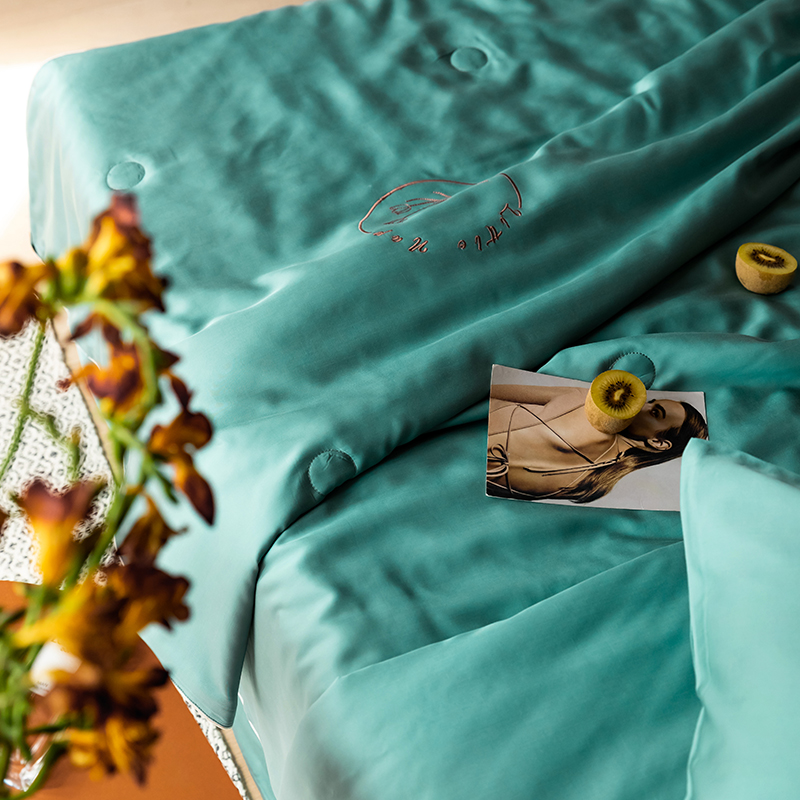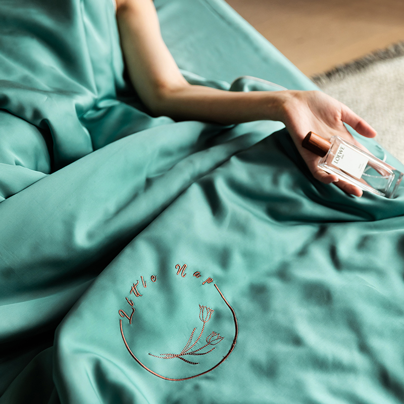 60s 200*105兰精天丝面料 整张羽丝绒加精美刺绣 滚绳包边
