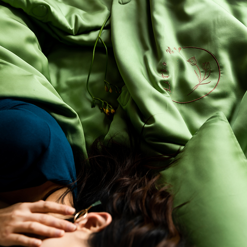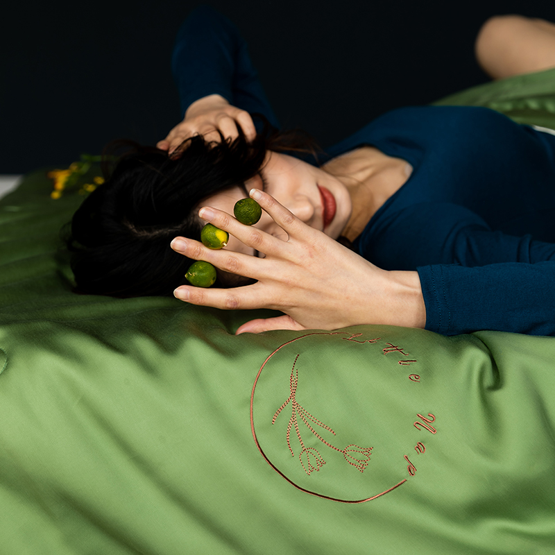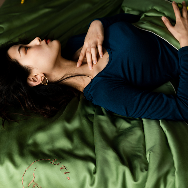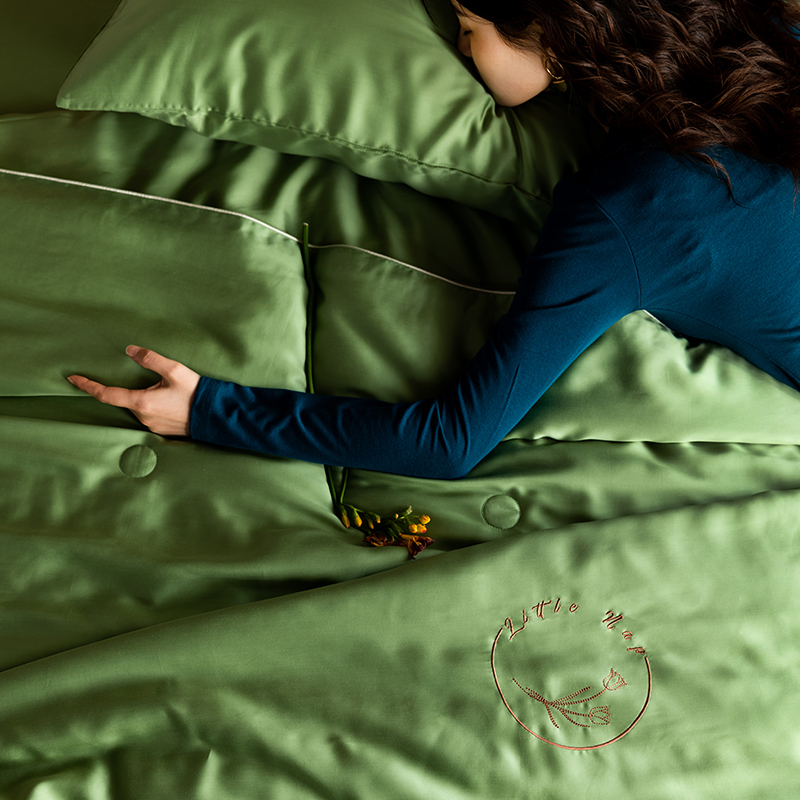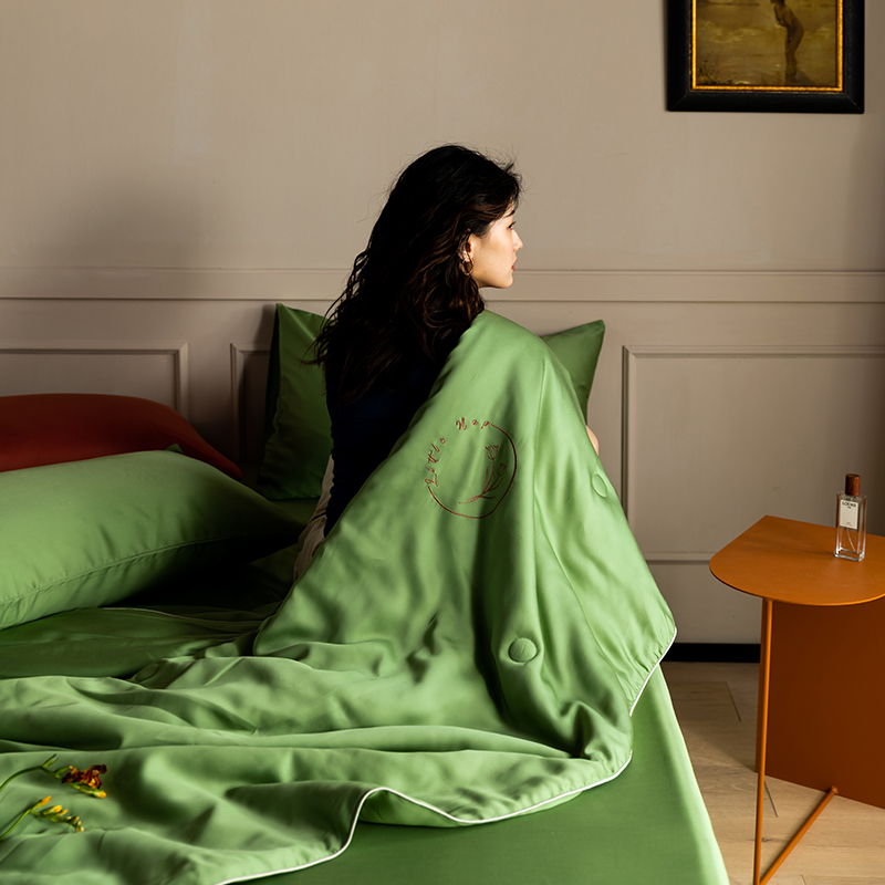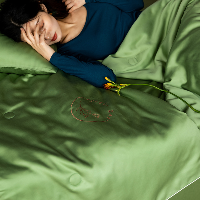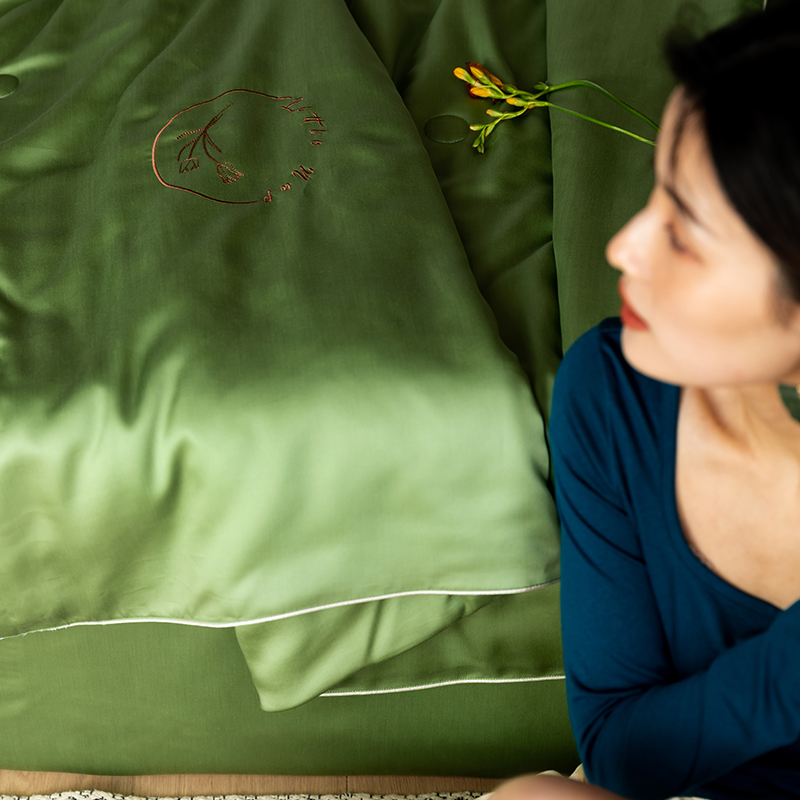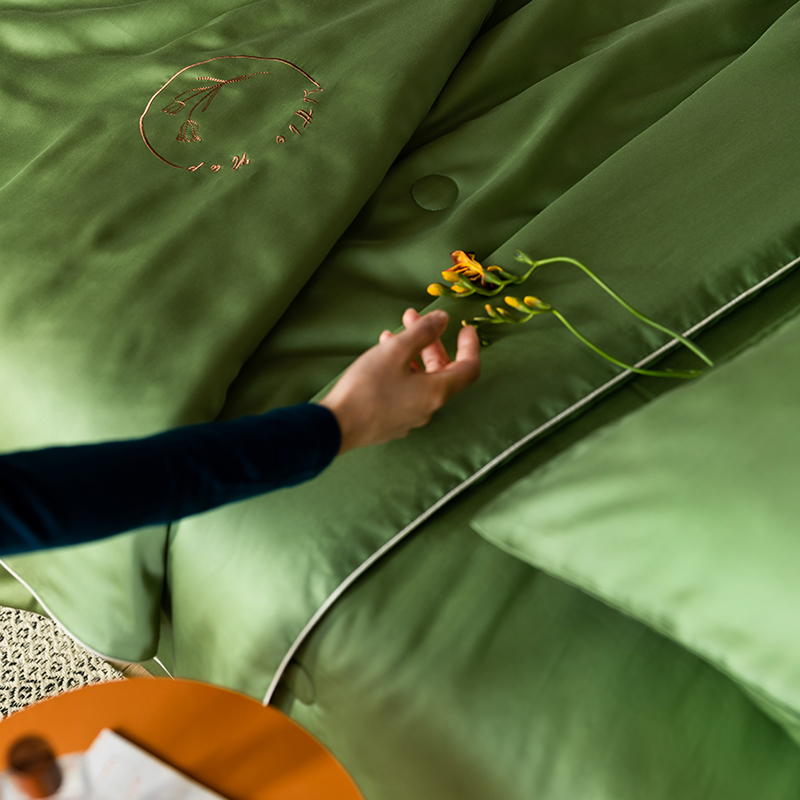 60s 200*105兰精天丝面料 整张羽丝绒加精美刺绣 滚绳包边