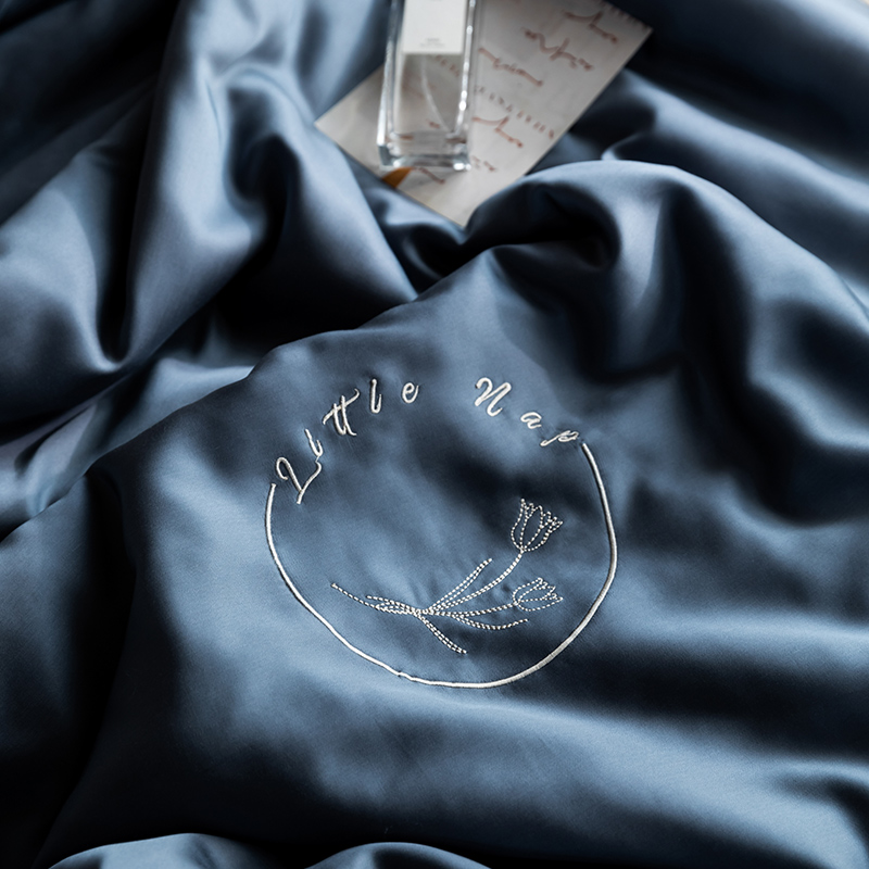 60s 200*105兰精天丝面料 整张羽丝绒加精美刺绣 滚绳包边