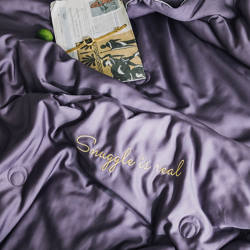 莫代尔面料 整张羽丝绒填充 精美刺绣 滚绳包边