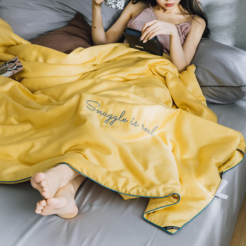 莫代尔面料 整张羽丝绒填充 精美刺绣 滚绳包边