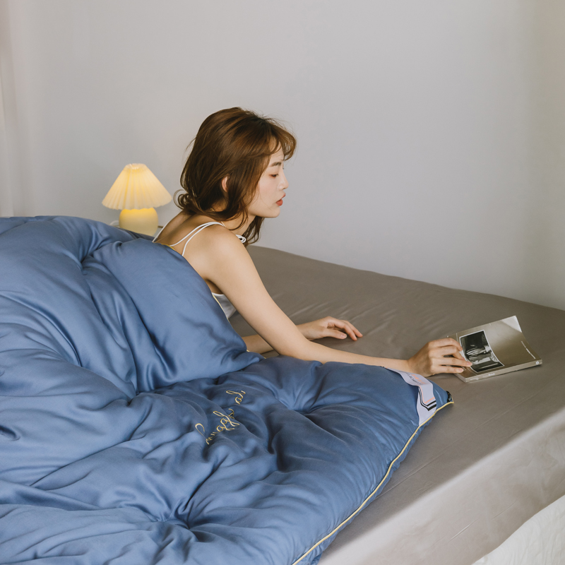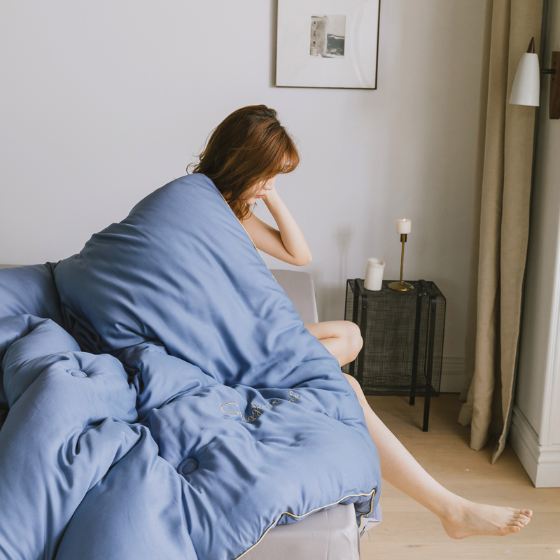 莫代尔刺绣冬被 月光蓝